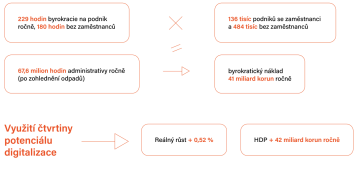 Exkluzivní studie, kterou si nechala vypracovat společnost Mastercard a kterou pro iniciativu připravil ekonom Dominik Stroukal, kvantifikuje rozsah byrokratické zátěže i potenciální přínosy digitalizace. Malé podniky v Česku ročně stráví odhadem 67,6 milionu hodin administrativou, zejména tou spojenou s řízením zaměstnanců, což odpovídá zhruba 41 miliardám korun ročně.